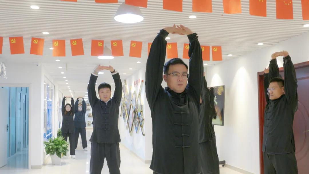 在公司領(lǐng)導(dǎo)的引領(lǐng)帶動(dòng)下,全體員工都加入到了“八段錦”訓(xùn)練的行列中來(lái)。每日晨會(huì),員工們都紛紛加入其中,有時(shí)王海軍總經(jīng)理還親自示范指導(dǎo),領(lǐng)著大家練、帶著大家做,耐心細(xì)致地講解動(dòng)作要領(lǐng)和注意事項(xiàng),并在訓(xùn)練結(jié)束后進(jìn)行現(xiàn)場(chǎng)點(diǎn)評(píng),為大家改進(jìn)動(dòng)作提出具有針對(duì)性和指導(dǎo)性的意見(jiàn)建議,讓大家在領(lǐng)略傳統(tǒng)太極文化魅力的同時(shí),于文化熏陶中達(dá)到陶冶情操和強(qiáng)健體魄目的。